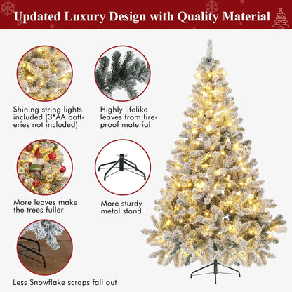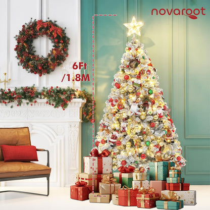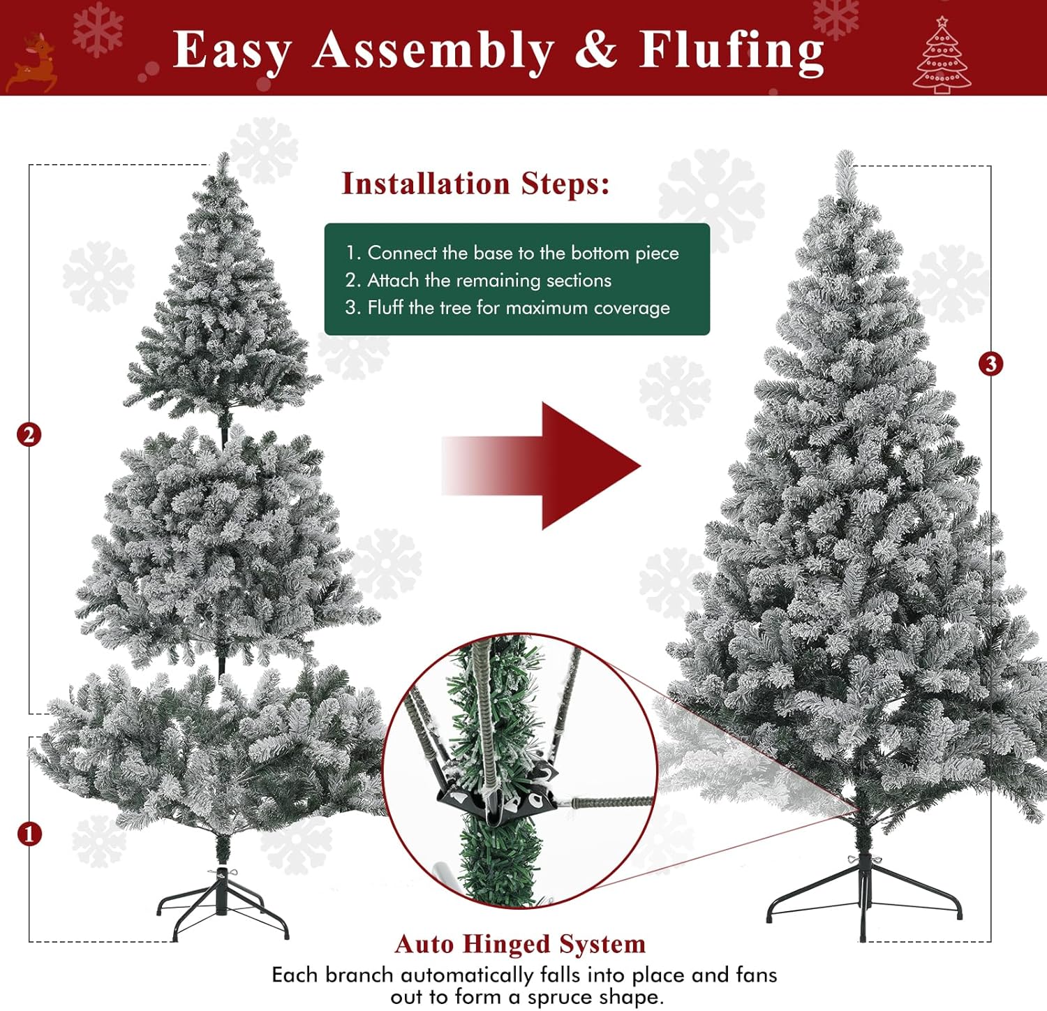 Prelit Christmas Tree, 6Ft/1.8M Pre-Lit Artificial Christmas Tree, Snow Flocked Pre-Lit Pencil Spruce Xmas Tree with Incandescent Lights